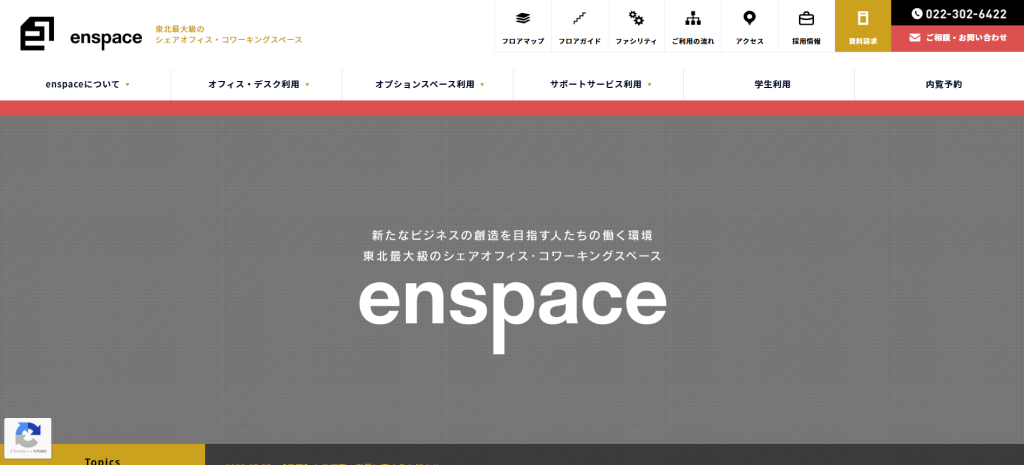 enspaceは、仙台の中心部・国分町に位置する東北最大級のコワーキングスペース。洗練された内装と開放的な空間が特徴で、フリーランスやスタートアップ企業の拠点として人気です。