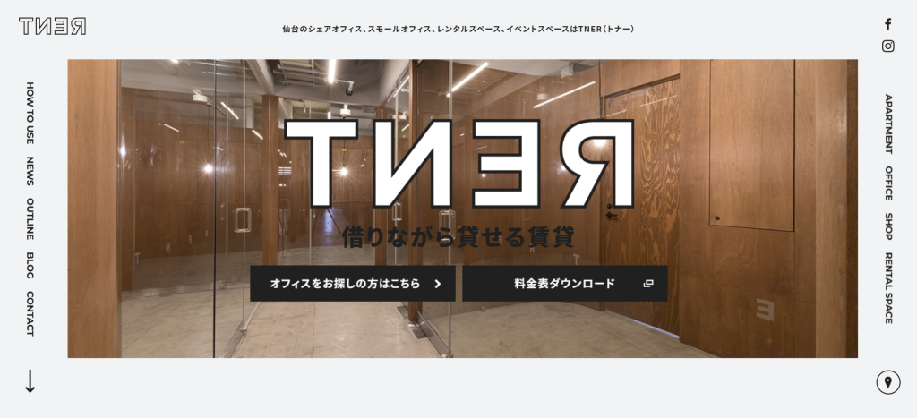 TNERは、仙台市青葉区二日町にあるシェア型複合施設で、「借りながら貸せる賃貸」という新しいワーク&ライフスタイルを提案しています。オフィス・アパートメント・ショップ・レンタルスペースという多様な用途が1棟に集約されており、フリーデスクや固定デスク、個室オフィスなど、働き方の幅に応じた選択肢が揃っています。