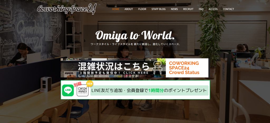 コワーキングスペース24は、大宮区のソシオ大宮ビルにあり、大宮駅東口から徒歩7分というアクセスの良さが魅力です。木のぬくもりを感じられるデザインを採用したカフェのような開放的で、ワークスタイルや用途に合わせて多彩に利用できます。