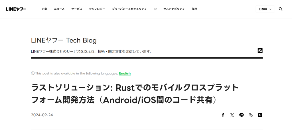 LINEヤフーのTech Blogでは、Rustをモバイルプロジェクトに導入した事例が紹介されています。