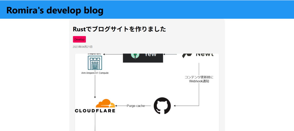 個人開発者によるRomira’s develop blogでは、Rustを用いたブログサイト構築の経験が詳細に記録されています。