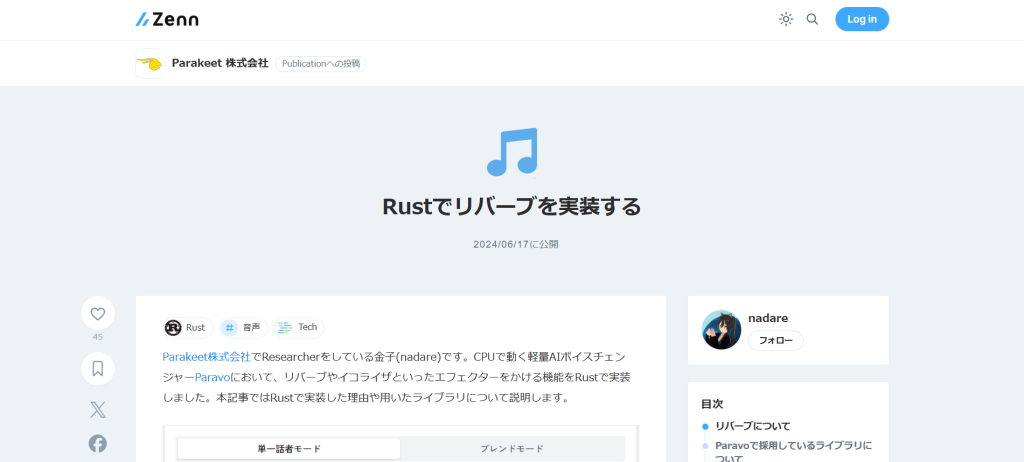 こちらは軽量AIボイスチェンジャー「Paravo」で、リアルタイムリバーブ(残響)エフェクトをRustで実装した過程について解説された記事です。