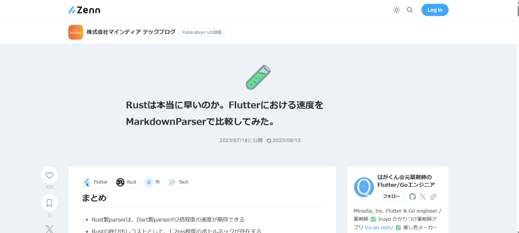 株式会社マインディアは、Flutterアプリ内でRust製Markdownパーサーを導入し、Dart製同機能とのパフォーマンス比較を行った結果を報告しています。