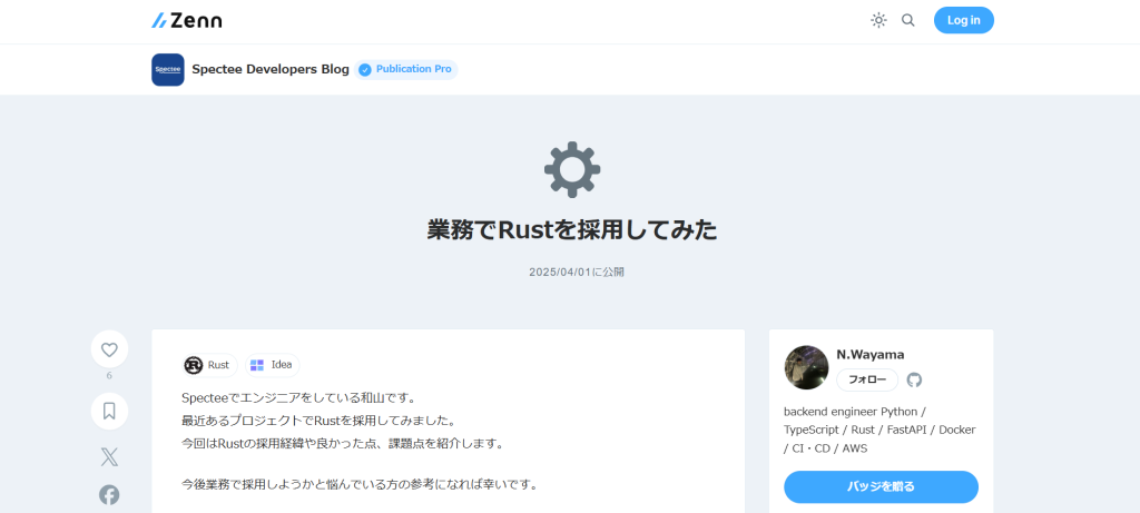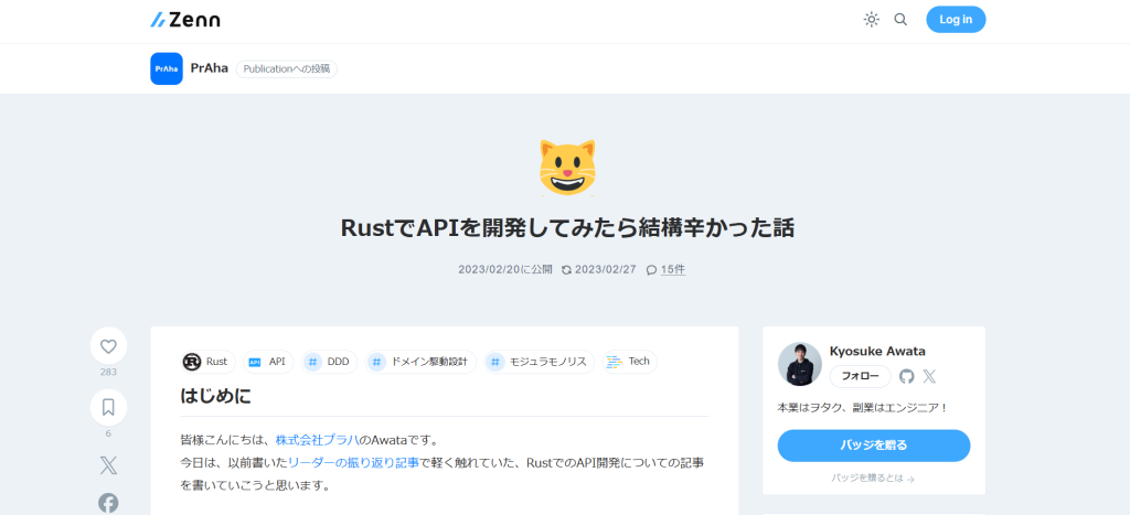 こちらでは、約5か月間にわたるRustを用いたWeb API開発の経験が詳細に記録されています。