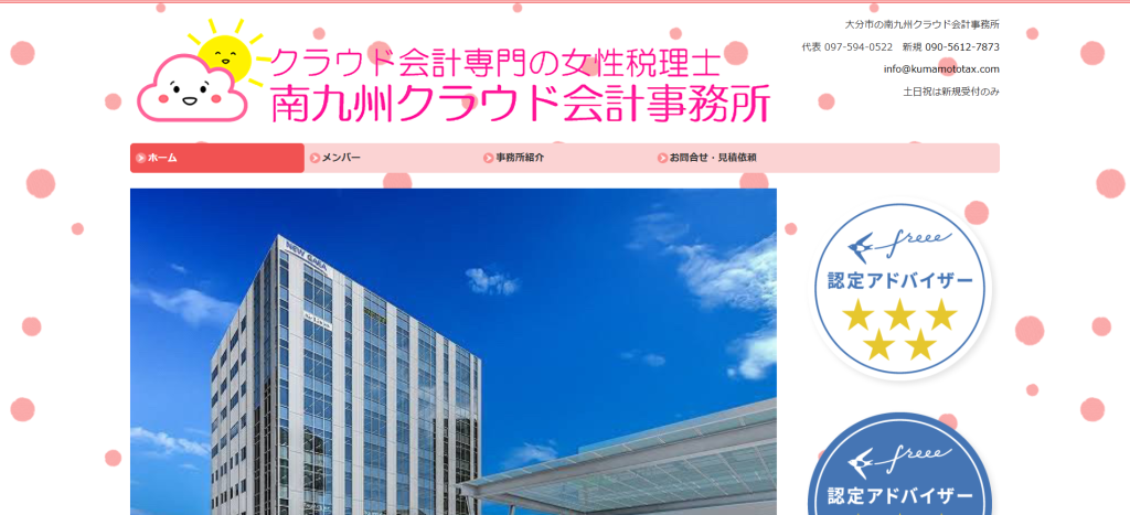 南九州クラウド会計事務所は、南九州トップクラスのクラウド会計導入実績を誇る女性税理士事務所です。freee5つ星認定アドバイザーおよびマネーフォワードプラチナ公認メンバーとして、クラウド会計特化型のサービスを提供しており、決算料0円・定額月額料金で利用できるのが特徴です。