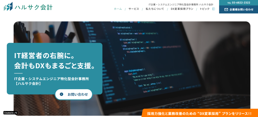 サービス内容は幅広く、税務顧問、確定申告、経理代行、インボイス制度導入支援などの会計税務業務に加えて、資金調達、会社設立、補助金・助成金申請まで対応。