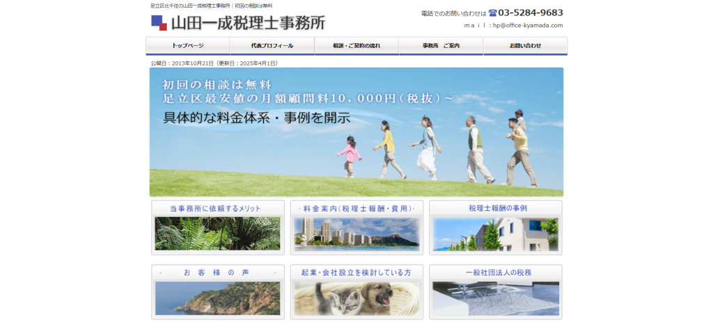 親しみやすい方針を明示し、起業支援から顧問業務、決算・申告書作成、税務申告書レビューといったスポット対応まで、依頼者ごとに柔軟なサービスを提供してくれるのが特徴。初回相談は無料で行っています。