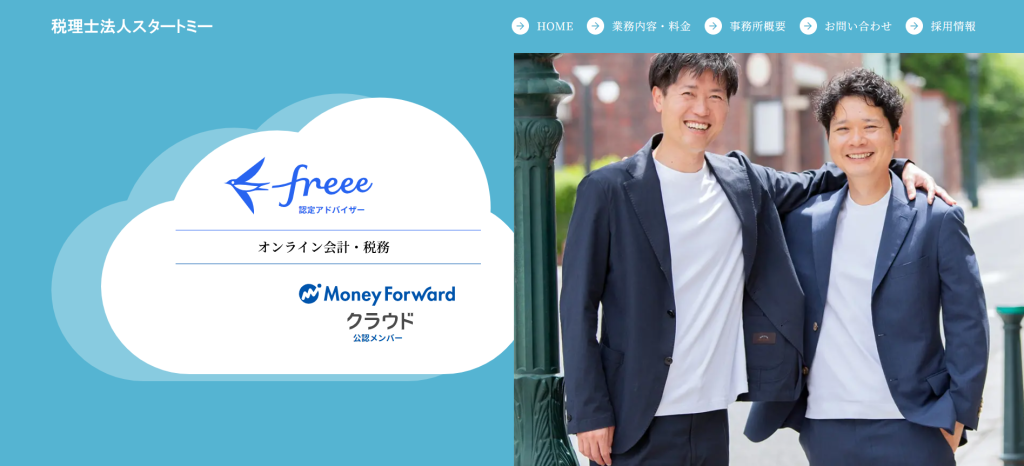 税理士法人スタートミーは、スタートアップやスモールビジネスの事業者様を対象とした、最新のテクノロジーを駆使しているITに強い税理士事務所です。クラウド会計ソフトやチャットツール、Zoomなどを活用して、効率的かつ柔軟なサービスを提供しています。