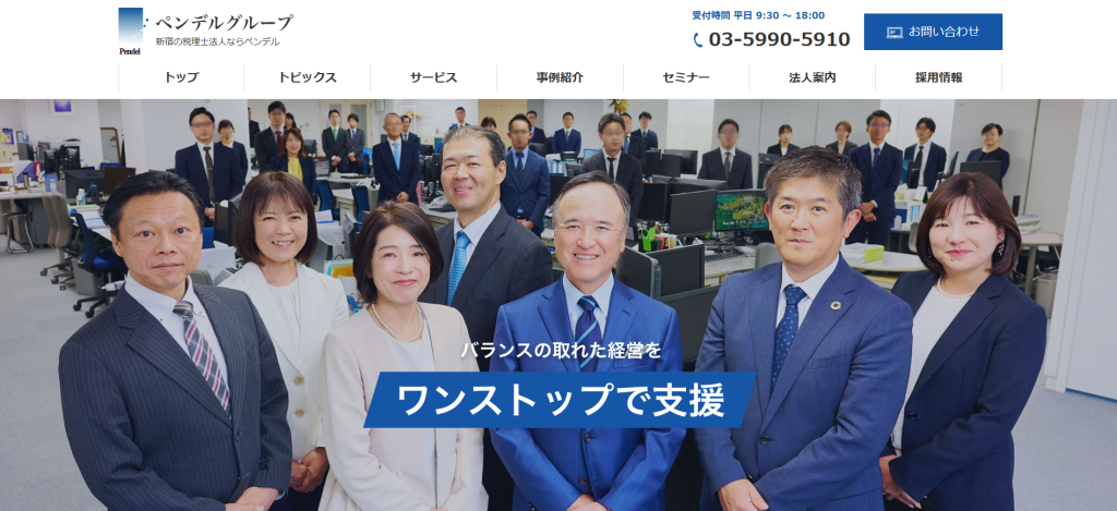 ペンデル税理士法人は東京都新宿区に拠点を置く税理士法人で、法人・個人事業主の会計、税務、経営支援を幅広く提供しています。専門力と総合力、信頼のネットワークによりトータルサポートしてくれるのが特徴です。