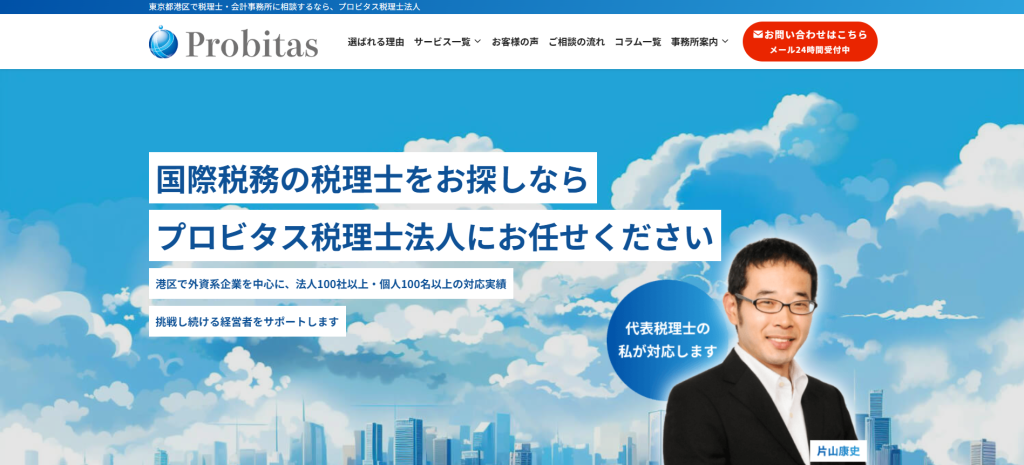 プロビタス税理士法人は、港区南青山に拠点を構える税理士法人です。法人100社以上、個人100名以上の国際税務の実績を誇り、複雑な海外関連の税務問題にも的確に対応しています。