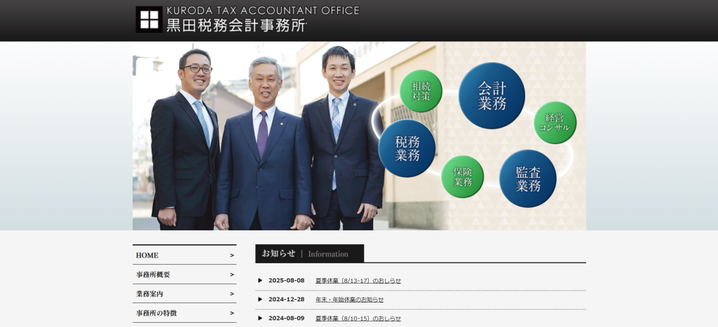 黒田税務会計事務所は、30年以上の実績を持つベテラン税理士と、フットワークの軽い若手スタッフが協業しているのが大きな特徴です。確かな知識と経験に裏付けされた安心感と、ITツールを積極的に活用した柔軟な対応を兼ね備えており、安心して税務を任せられます。