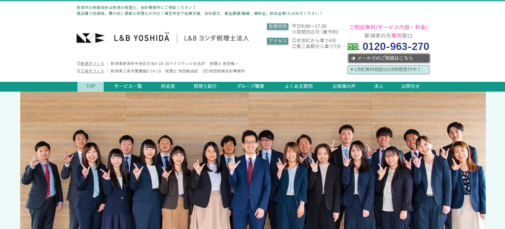 L&Bヨシダ税理士法人は、新潟県新潟市と三条市に拠点を構える、地域密着型の税理士法人です。創業60年以上の実績を持ち、税理士や社労士、中小企業診断士など多様な専門家が在籍。中小企業や個人事業主の経営を幅広く支援しています。