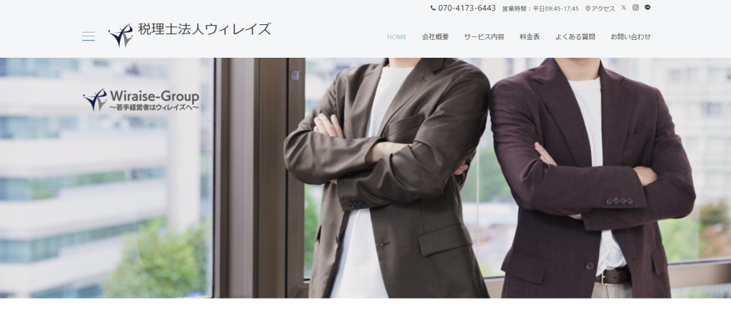 税理士法人ウィレイズは、若手代表による親しみやすさと専門性を兼ね備えた税理士法人です。公認会計士・税理士の資格を持つ2名の代表が中心となっており、中小企業やフリーランスの経営・財務改善サポートをおこなっています。