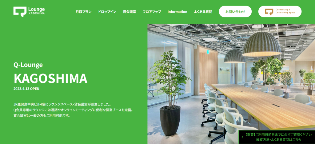 Q-Lounge KAGOSHIMAは、JR鹿児島中央駅直結のJR鹿児島中央ビル4階に位置する、JR九州が運営するコワーキングスペースです。2023年4月13日に開業し、九州各地の「Q」シリーズの拠点として、利便性の高い立地と充実した設備を提供しています。