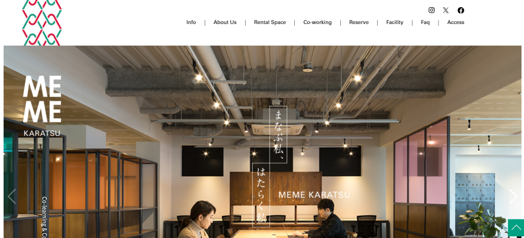 MEME KARATSUは、佐賀県唐津市の複合商業施設「KARAE」の2階に位置するコワーキングスペースです。「学ぶ」「働く」「生きる」をテーマに、地元住民や観光客、移住者、アドレスホッパーなど多様な人々が集い、交流し、共に成長できる場を提供しています。