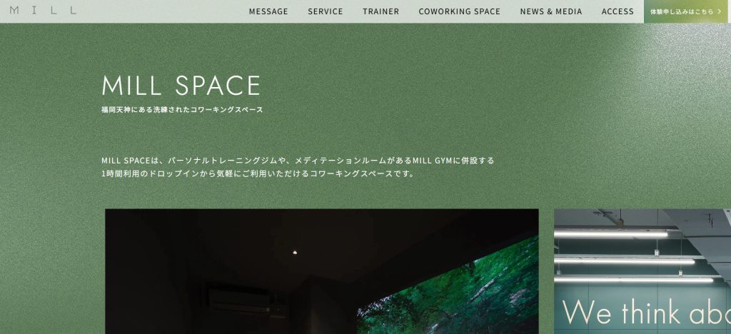 MILL SPACEは、パーソナルトレーニングジム「MILL GYM」に併設するコワーキングスペースです。地下鉄中洲川端駅から徒歩30秒という好立地で、天神エリアからもアクセスしやすく、フリーランスエンジニアやクリエイターにとって理想的な作業環境といえます。