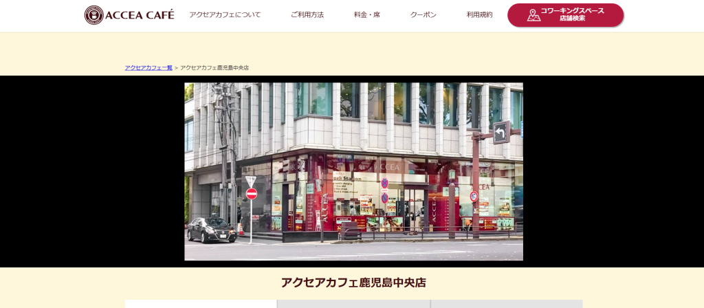 アクセアカフェ鹿児島中央店は、JR鹿児島中央駅東口から徒歩2分の距離に位置する、フリーランスやリモートワーカーに最適なコワーキングスペースです。全席に電源とWi-Fiが完備されており、フリードリンクも提供されています。