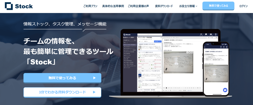 Stockは、株式会社Stockが提供する情報ストック型のコラボレーションツールです。ノート・タスク・メッセージを一つの場所に集約でき、プロジェクトごとの背景情報や依頼内容を整理しながら進行できます。