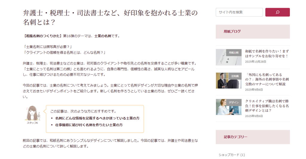 士業の名刺をデザインするに当たり、体系的な情報から実践的な知識までを必要としている人におすすめの記事です。