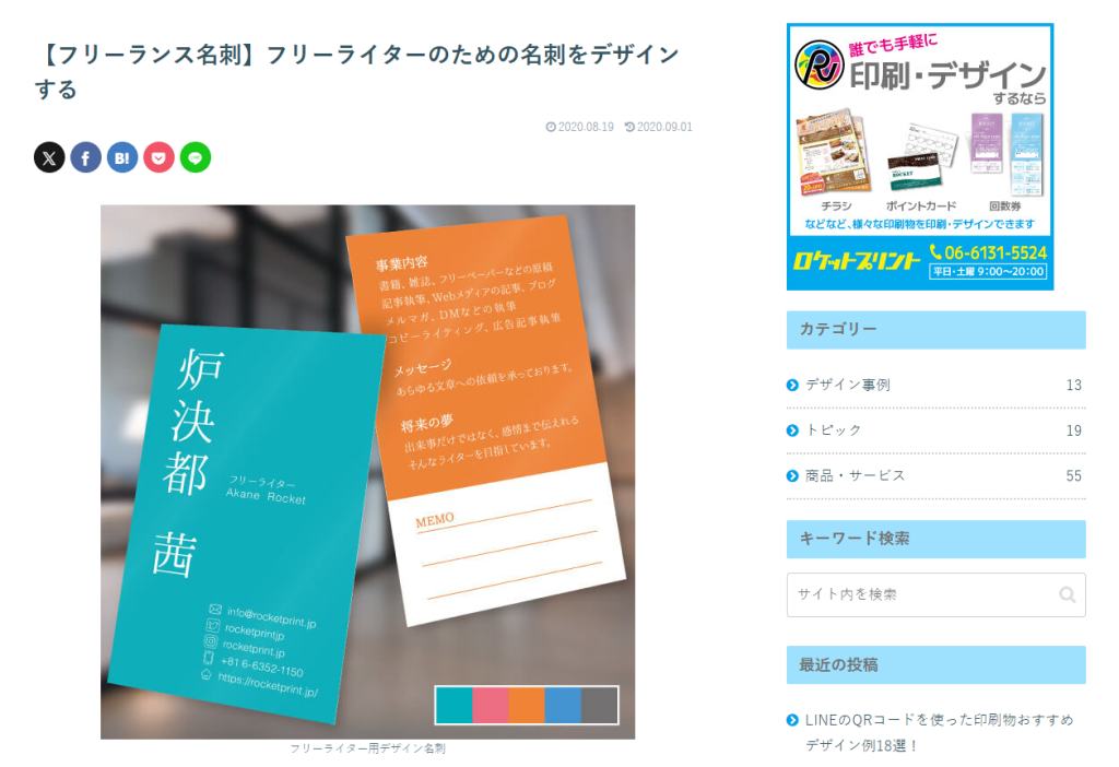 フリーライター用の名刺デザインを紹介する記事です。